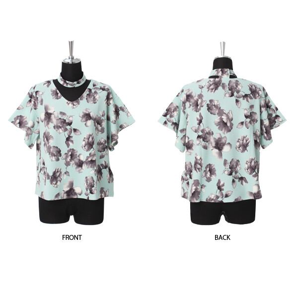 シックなモノトーン花がらが大人っぽい春物トップス。