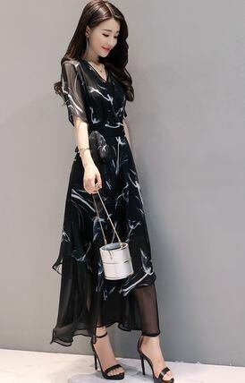 Vネックとシースルースカートがセクシーな大人可愛いワンピース☆結婚式や二次会にぴったりなエレガントなデザインが魅力的なパーティードレス。