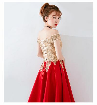 結婚式 パーティー ワンピース ミディアム ドレス レッド 赤