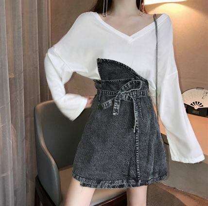 カジュアル ハイウエストデニムスカート リボン