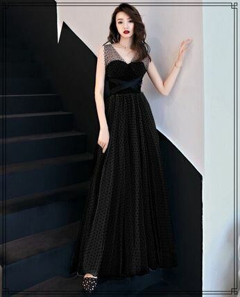 エレガント印象のロングドレス バックリボン 水玉 クロスデザイン ドレスワンピース。 バックリボンが可愛いです。 結婚式、二次会、パーティーにおすすめな一着です。