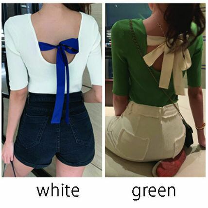 バックのリボンが可愛いリブニット。デニム等でカジュアルダウンして合わせてデイリースタイルに。