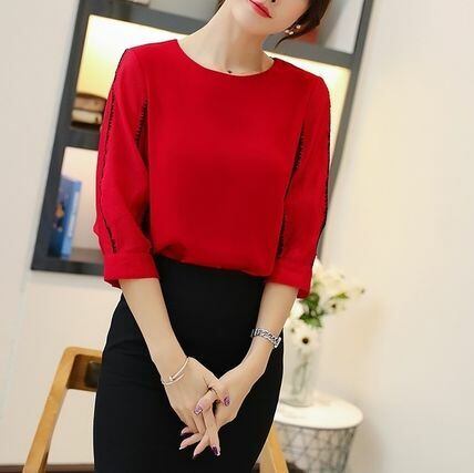 袖ステッチライン ブラウス 七分袖 シフォン