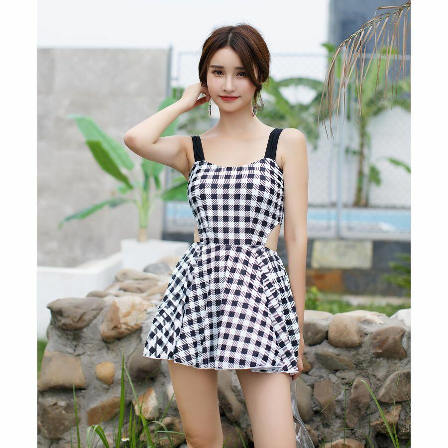 細見えシルエット。オールインワンでスタイルアップワンピース水着。細見えサイドオープンで体型カバー。