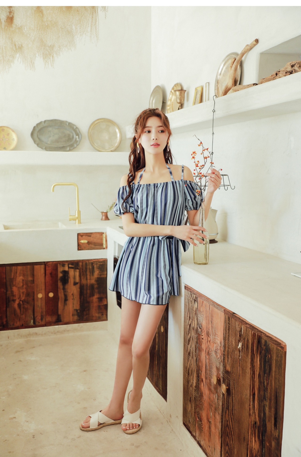 清潔感のあるフレッシュな雰囲気が魅力的なオフショルワンピース水着。露出が少なく洋服感覚で着こなしを楽しめます。リボンでウエストマークすることで大人シックな雰囲気もプラス。甘さと大人っぽさを絶妙なバランスを楽しめます。