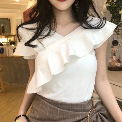 フリル カットソー ブラウス オフショルダー トップス 半袖