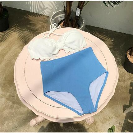 キュートなセパレートビキニ。マーメイドのようなデザインでとっても可愛らしく気になるお腹もすっぽりカバーしてくれるハイウエスト。