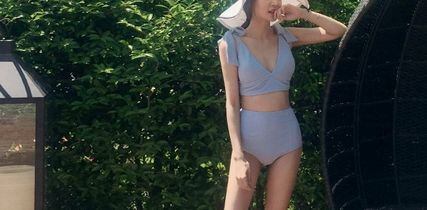 ハイウエストに ディープVでもしっかりカバー するトップのセット。太めの肩紐でしっかり結べるから安心です。レトロ 感漂う可愛 くて セクシー な ビキニ 。