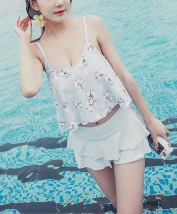 大流行のタンキニに大人気の花柄がとても可愛いらしく女性らしさを強調。