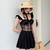 セクシーレースのオープンバック、体型カバーワンピース水着です。着回し抜群おしゃれコーデ。