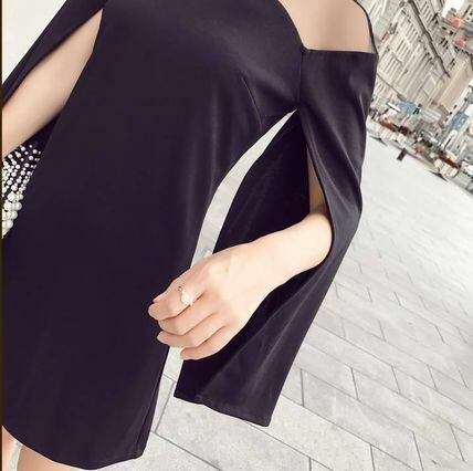 シースルーがセクシーなミニ丈ワンピースです。オールブラックで大人っぽさをプラスしています。お呼ばれにピッタリな華やかデザインです。