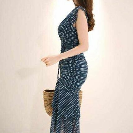 ノースリーブワンピース ギャザー ルーシュ フリル タイト