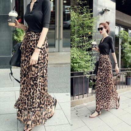 スカートヒョウ柄 シフォン レース ロング マキシ丈 お洒落