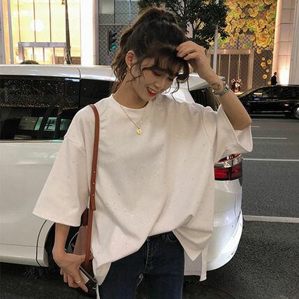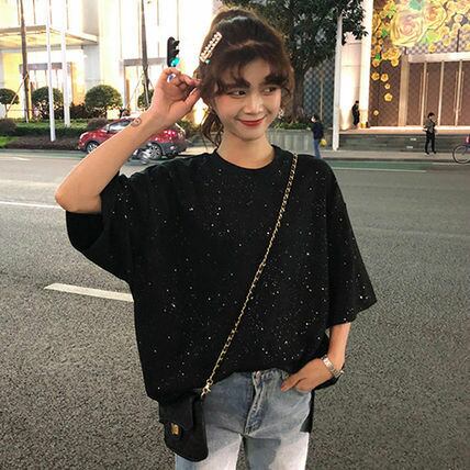 キラキララメプリント半袖オーバーサイズTシャツです。ラメ装飾デザインがカワイイキラキラ半袖カットソー。ナチュラルな風合いの生地で涼しげな着心地です。トレンド要素を抑えたデザインでボトムスにインしてスタイリッシュに仕上げるのもオススメです。