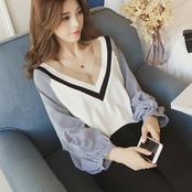 深めの胸元からインナーをちらりと覗かせ奥行きのある着こなしを楽しめます。すっきりとしたコンパクトな身頃に柔らかい印象のパフスリーブでメリハリ効いたバランスが魅力です。