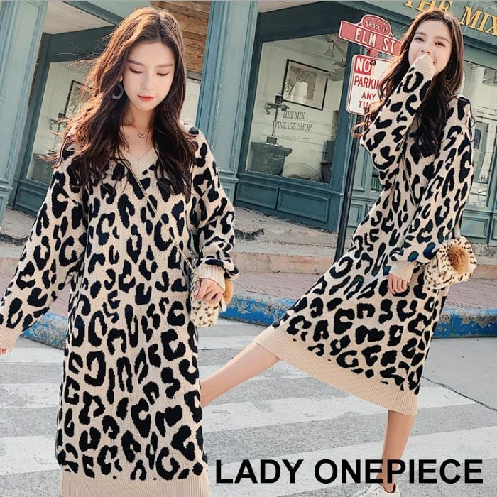膝下丈のヒョウ柄ワンピースです。ゆったりサイズです。