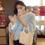 珍しいフェイクファーの短めトップスです。ブラウスなどと重ね着しても可愛いです。パステルカラーが優しい印象です。