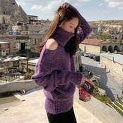 ニットセーター オフショルダー タートルネック