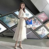 胸元のシャーリングやフレア袖。ふわっとしたシルエットの透け感。女の子の可愛いをギュッと詰めこんだデザインです。結婚式や二次会、パーティーやディナーなど様々なシーンで使って頂けるワンピースドレスです。