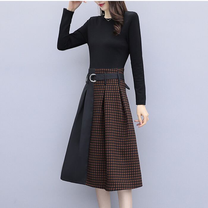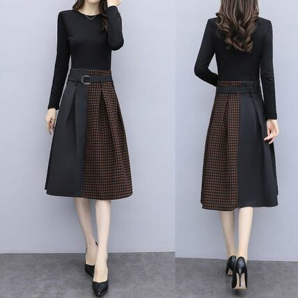 セットアップのように見えるおしゃれなワンピースです。トップはシンプルだけどスカートでおしゃれ感のある雰囲気に。フレアーなラインが大人女性のエレガントさがアップします。