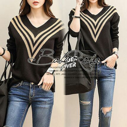 カジュアルなVネックセーターです。ストライプがおしゃれです。