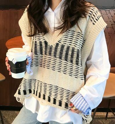 ゆったりとしたカジュアルなVネックのベストです。 ボーダーがおしゃれです。