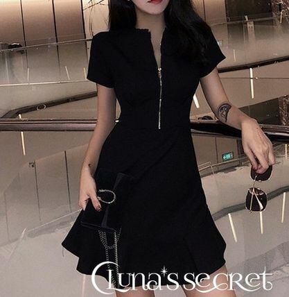 ワンピース フロントファスナー フレア ミニ丈 着痩せ