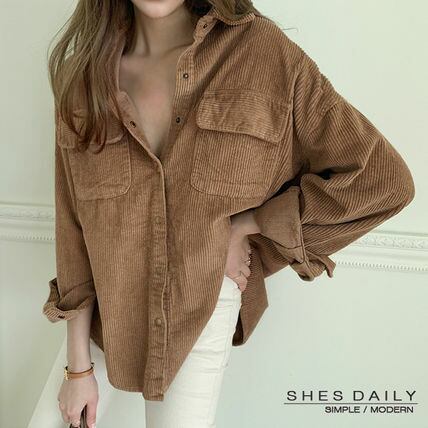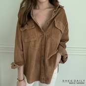 胸元ポケット カジュアルなコーデュロイブラウスシャツ