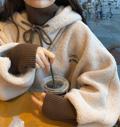 ネック部分と袖の切り替えがかわいい。軽いのに暖かいもこもこトレーナーです。