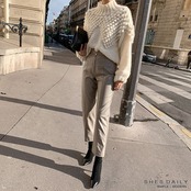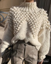 お洒落なぷくぷく模様がかわいいタートルネックのニットです。ボリュームがあります。