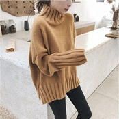 ハイネックのゆったりとしたニットセーターです。シンプルなデザインです。