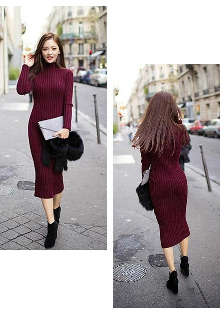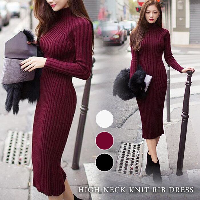 上品な大人の女性を演出できるハイネックミディ丈リブニットワンピースです。すっきりときこなせるデザインなので、スタイルを良くみせてくれます。