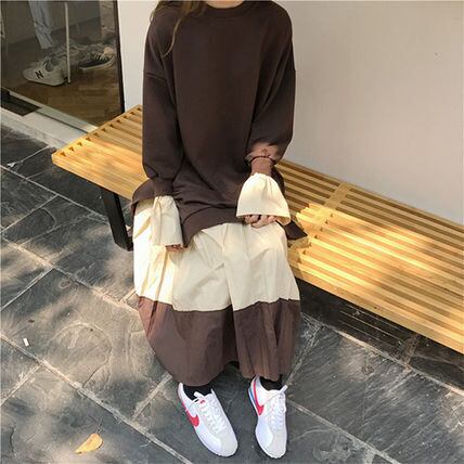 ワンピース プリーツ バイカラー おしゃれ ロング丈 秋冬