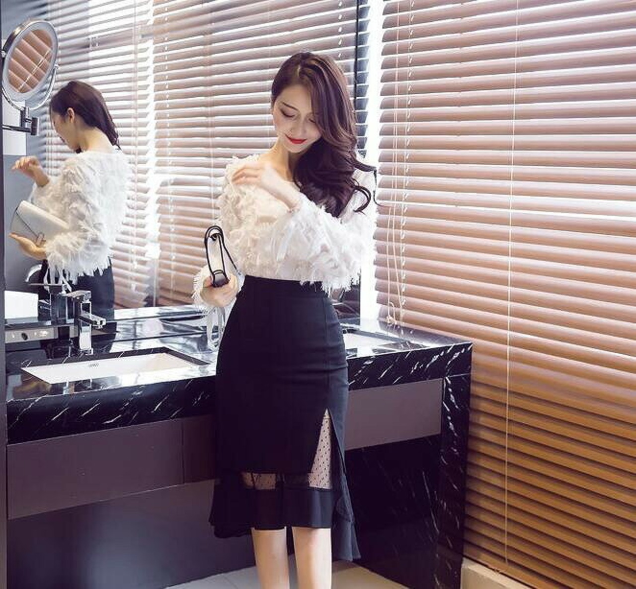 スリットから覗くレースがセクシー メッシュ フィッシュテールスカート