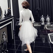 白のパーティードレスです。ゴージャスで大人かわいい。