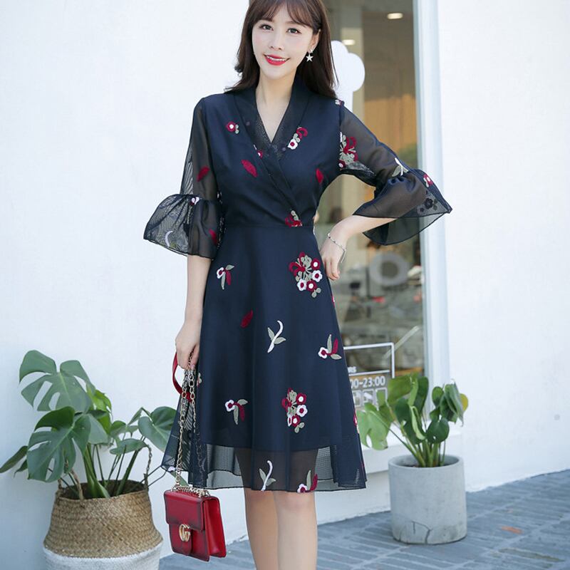 花柄 ワンピース 膝丈