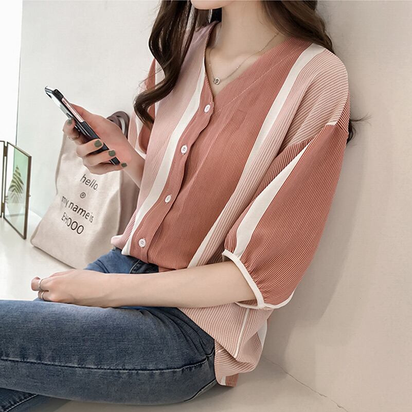 ストライプ シャツ Vネック