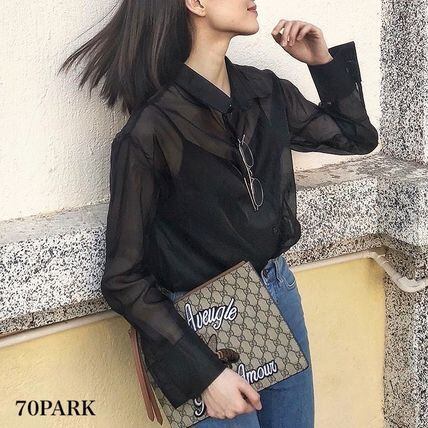 長袖 シアー ブラウス