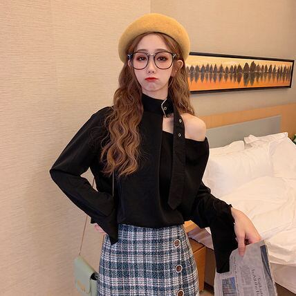 チラ見せの鎖骨がおしゃれなブラウスです。