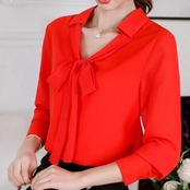 胸元のリボンが特徴的な普段使いができるブラウスです。