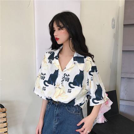 ゆったりシルエットのシャツです。猫のモチーフと総柄になっていて可愛いです。