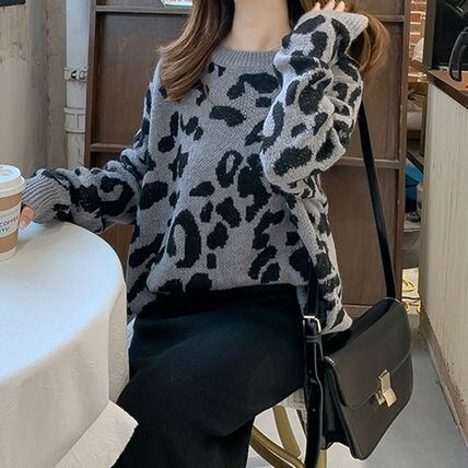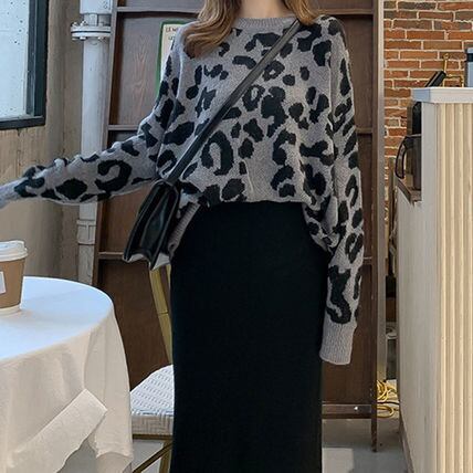 ゆる可愛い レオパード柄 ルーズニット トップス