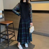ワンピース ニットベスト プリーツスカート